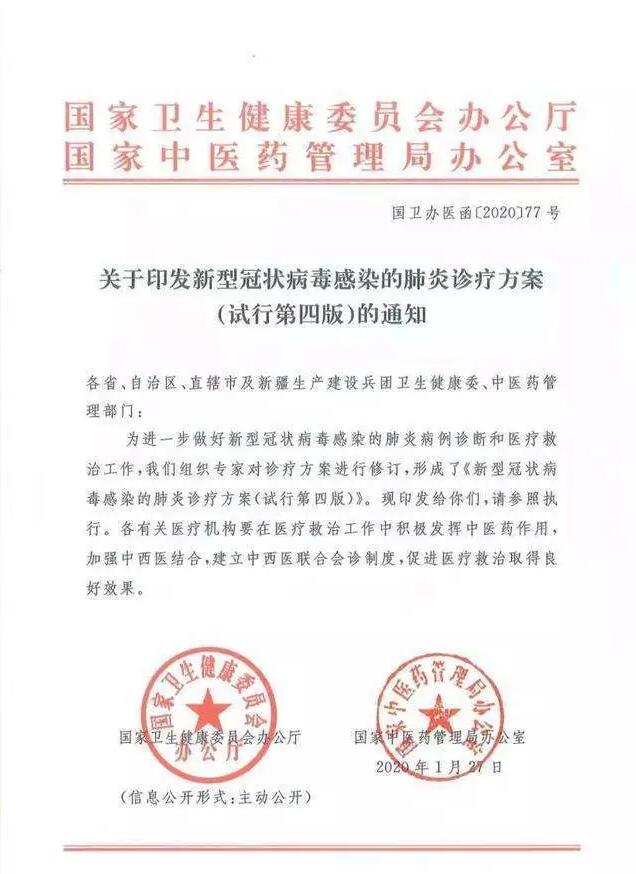 近日,国家卫健委发布了最新的《新型冠状病毒感染的肺炎诊疗方案》(试行第四版),中国政府高度重视新型冠状病毒防控工作,并采取了严格的防控措施。中国有信心、有能力有效控制并最终战胜疫情。作为传统老字号药企,太安堂也在为国家和民族贡献自己的绵薄之力,特别值得一提的是,太安堂药业生产的解热消炎胶囊就对新型冠状病毒感染的肺炎具有相当的预防和治疗作用。